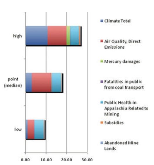 ภาพที่ 2: ต้นทุนผลกระทบภายนอกของถ่านหิน (มูลค่า ณ ปี 2008 US Cents/KWh)