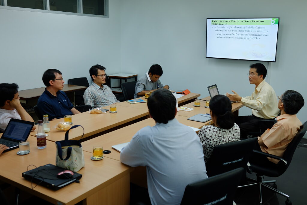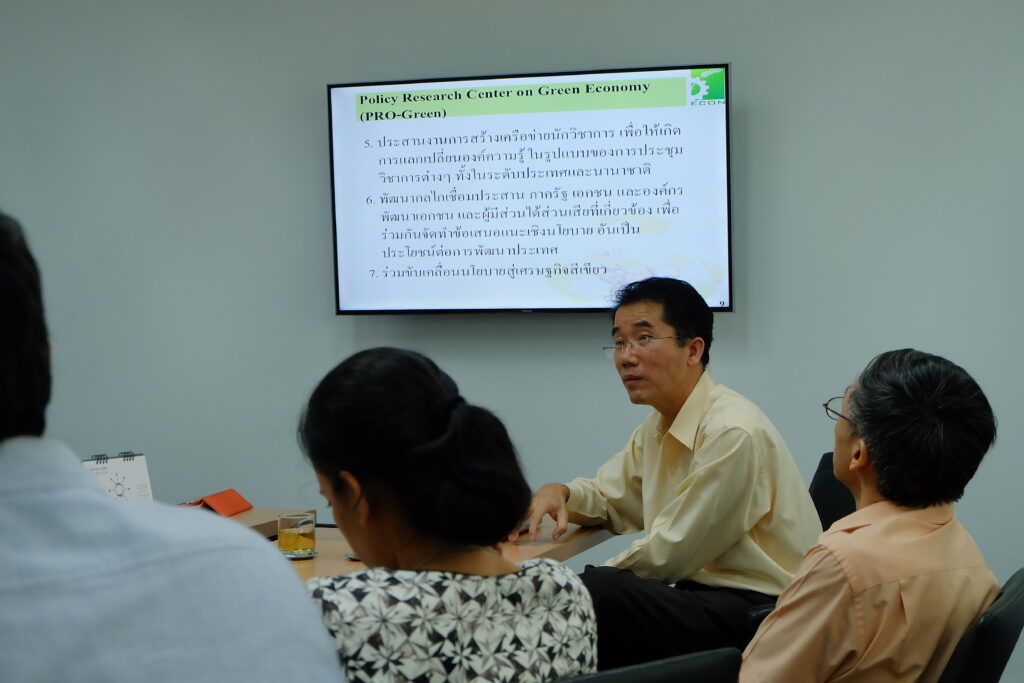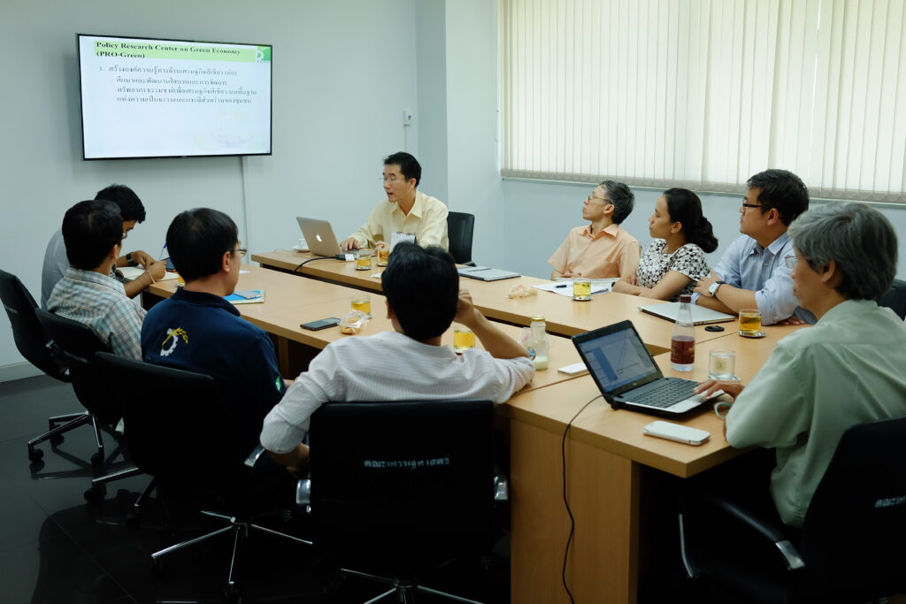 ศูนย์วิจัยนโยบายด้านเศรษฐกิจสีเขียว ได้จัดการประชุมเครือข่ายนักวิจัยรุ่นใหม่ในคณะเศรษฐศาสตร์ เมื่อวันที่ 21 กันยายน 2558 ณ คณะเศรษฐศาสตร์ มหาวิทยาลัยธรรมศาสตร์ ศูนย์รังสิต โดยมีอาจารย์และบุคลากรในคณะเศรษฐศาสตร์ที่มีความสนใจที่จะพัฒนาโจทย์วิจัยที่เกี่ยวข้องกับเศรษฐกิจสีเขียว จำนวน 12 คน โดยหัวข้อที่อาจารย์และบุคลากรให้ความสนใจและมีโอกาสที่จะพัฒนาเป็นโครงการวิจัย ได้แก่