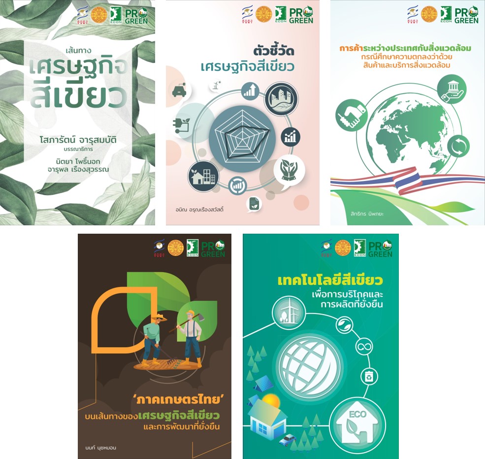 ศูนย์วิจัย PRO-Green ต้องการเป็น “กระจกส่องนโยบายให้กับรัฐบาลในด้านเศรษฐกิจสีเขียว” เพื่อกระตุ้นให้เกิดการแก้ไขปรับปรุงนโยบายที่เหมาะสม จึงดำเนินการจัดทำชุดความรู้ด้านเศรษฐกิจสีเขียว ในรูปแบบของหนังสือฉบับพกพา จำนวน 5 เรื่อง ดังนี้
